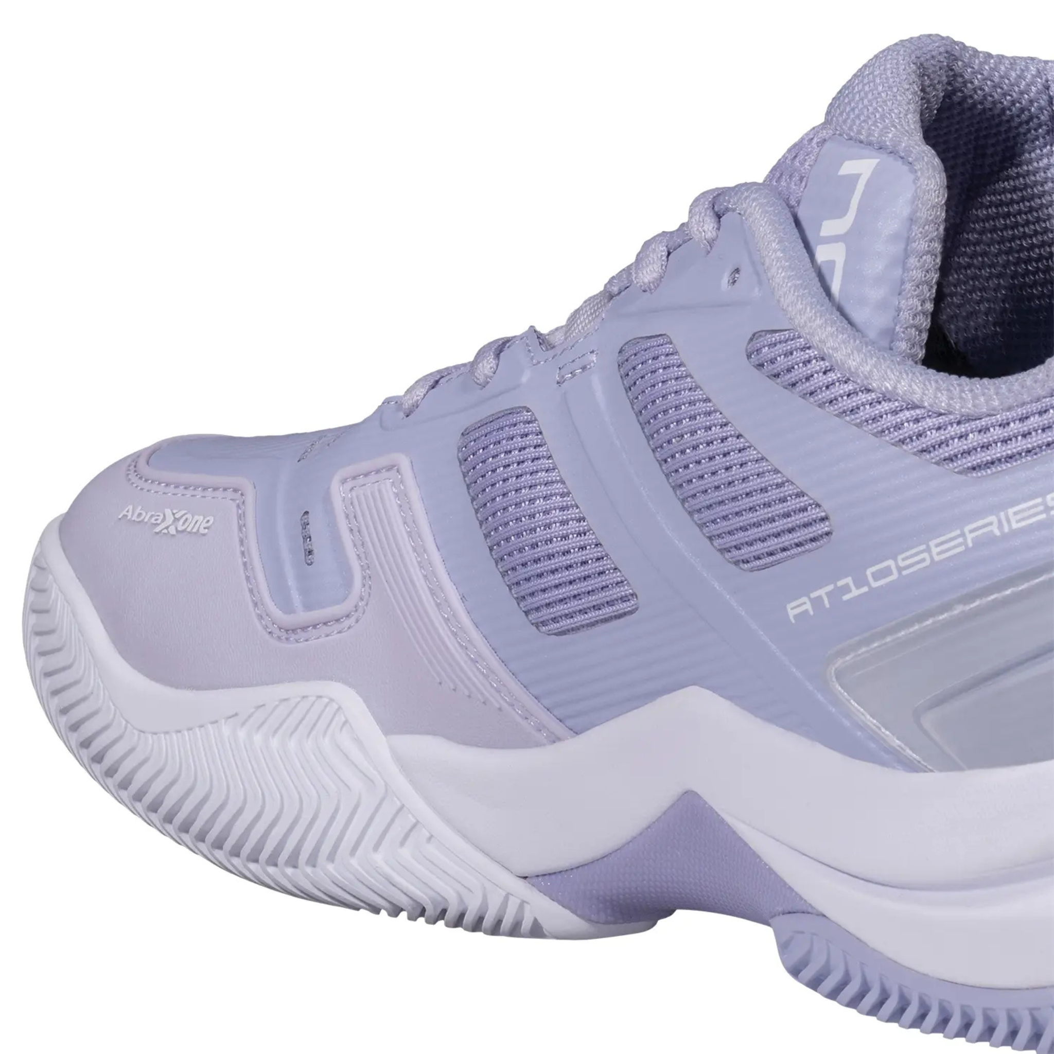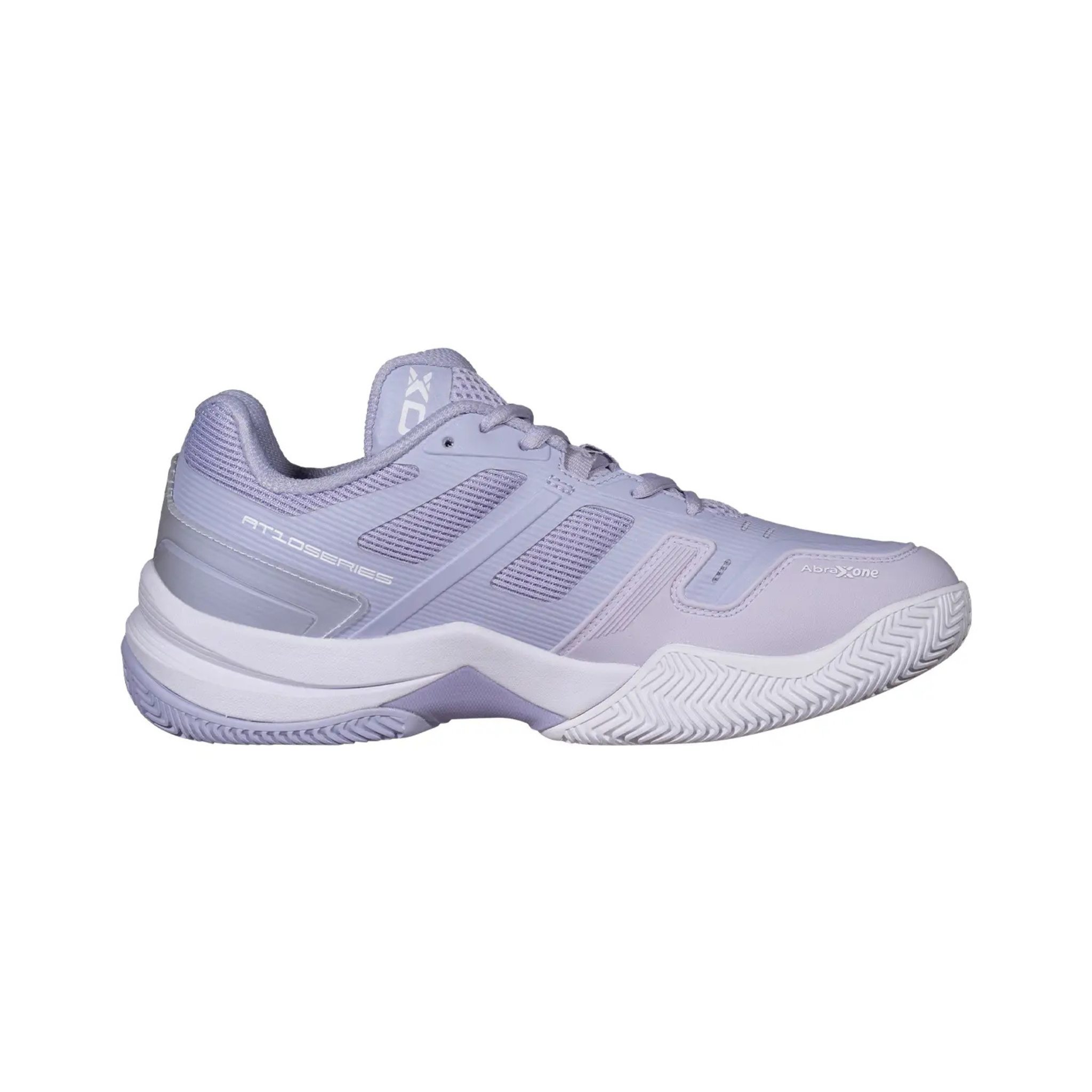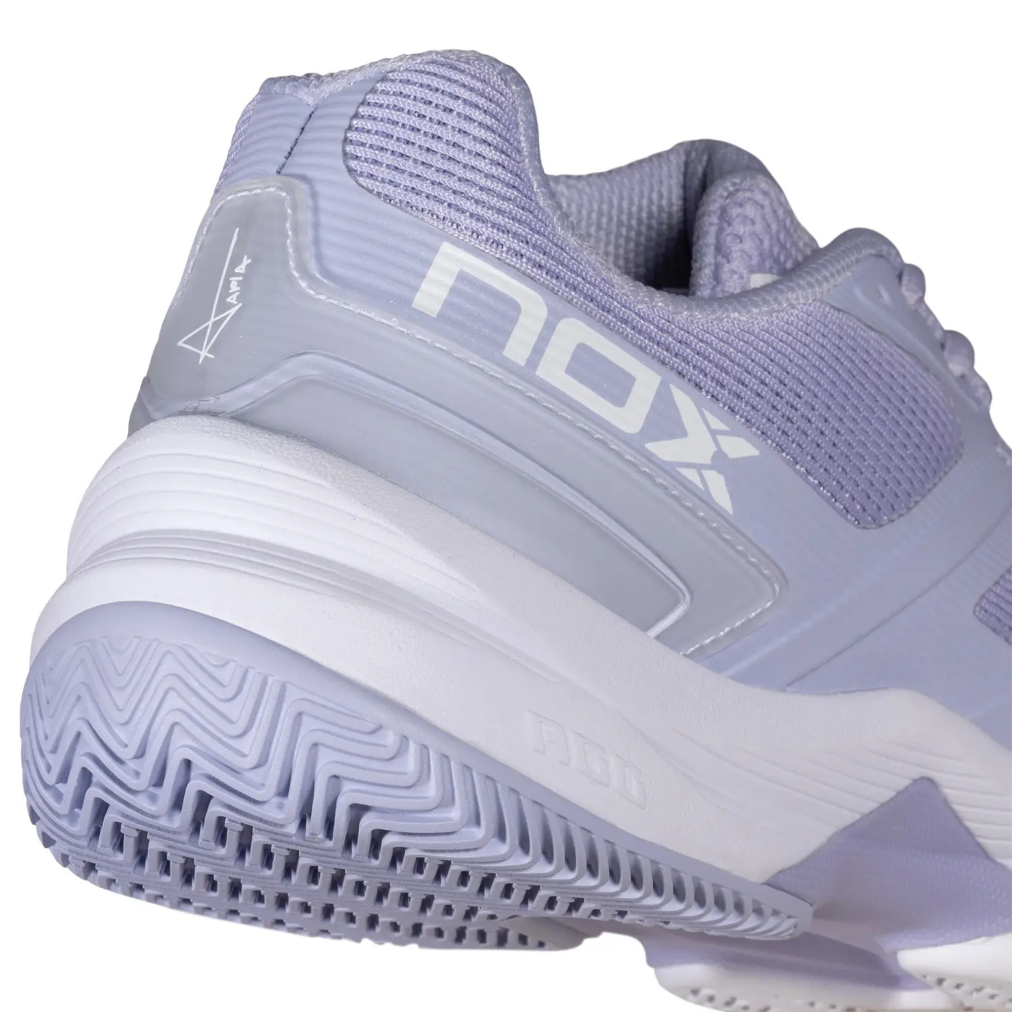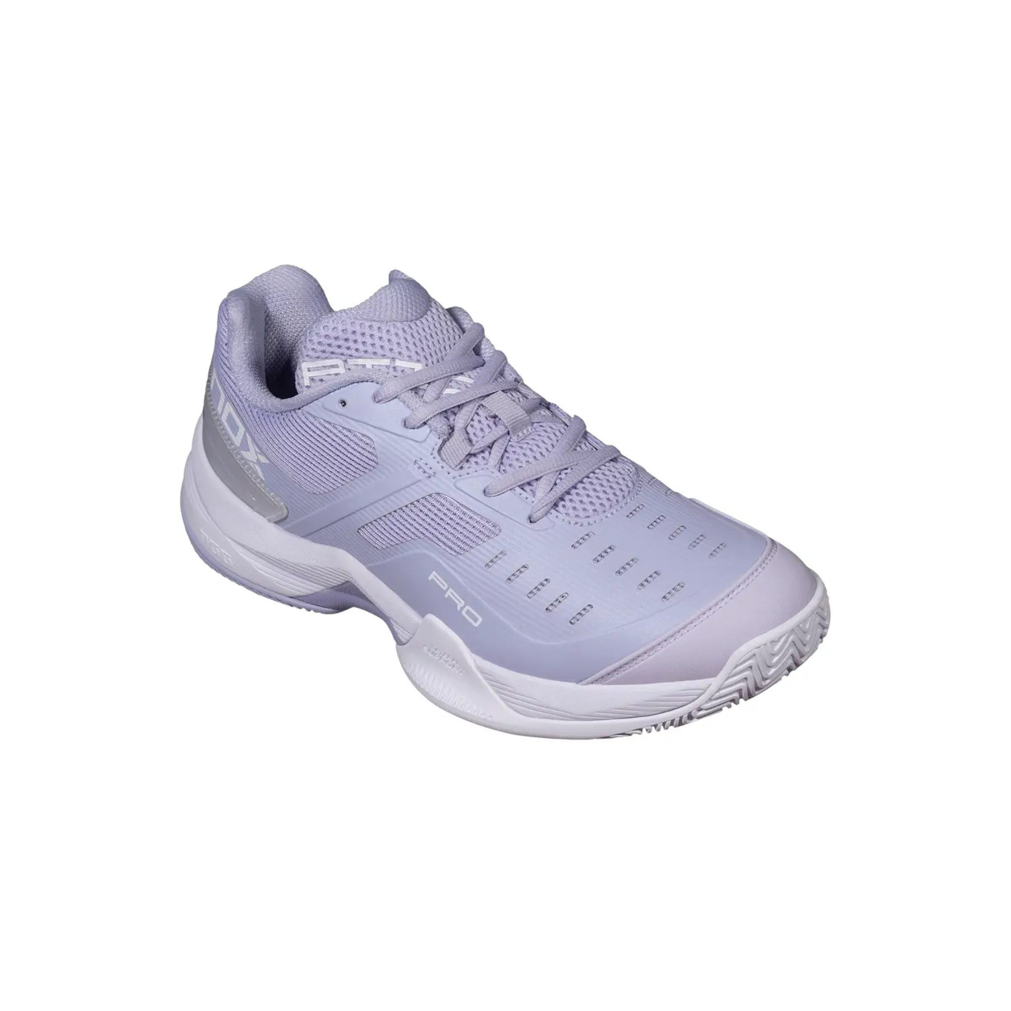 NOX AT10 Pro Women Padel Shoes 2026 Lilac. AGG technology reduces muscle load. Hybrid sole with zigzag pattern ensures grip. Strobel EVA cushioning, TPU mesh upper, Ortholite insole. Professional padel footwear for explosive players seeking stability and comfort.