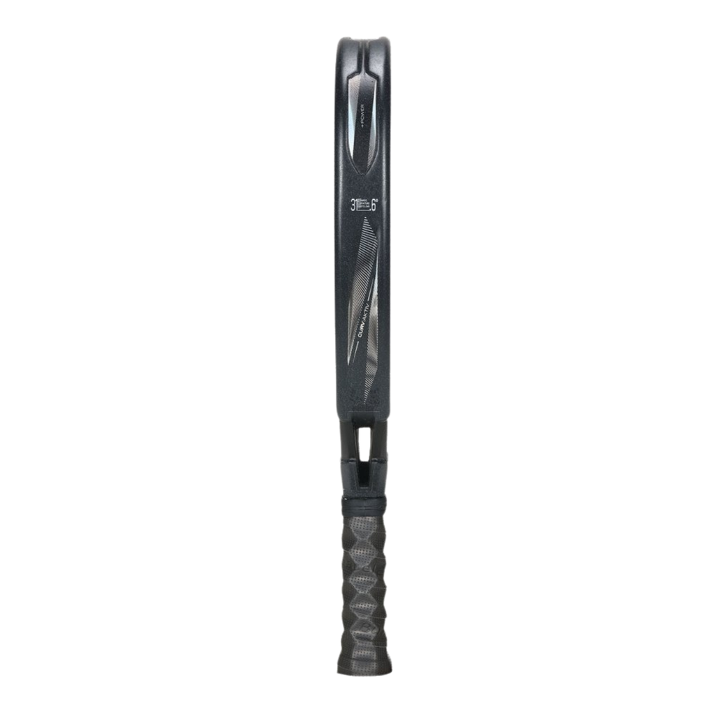The racket weighs between 365-375 grams, providing excellent balance for aggressive play while maintaining control and maneuverability.