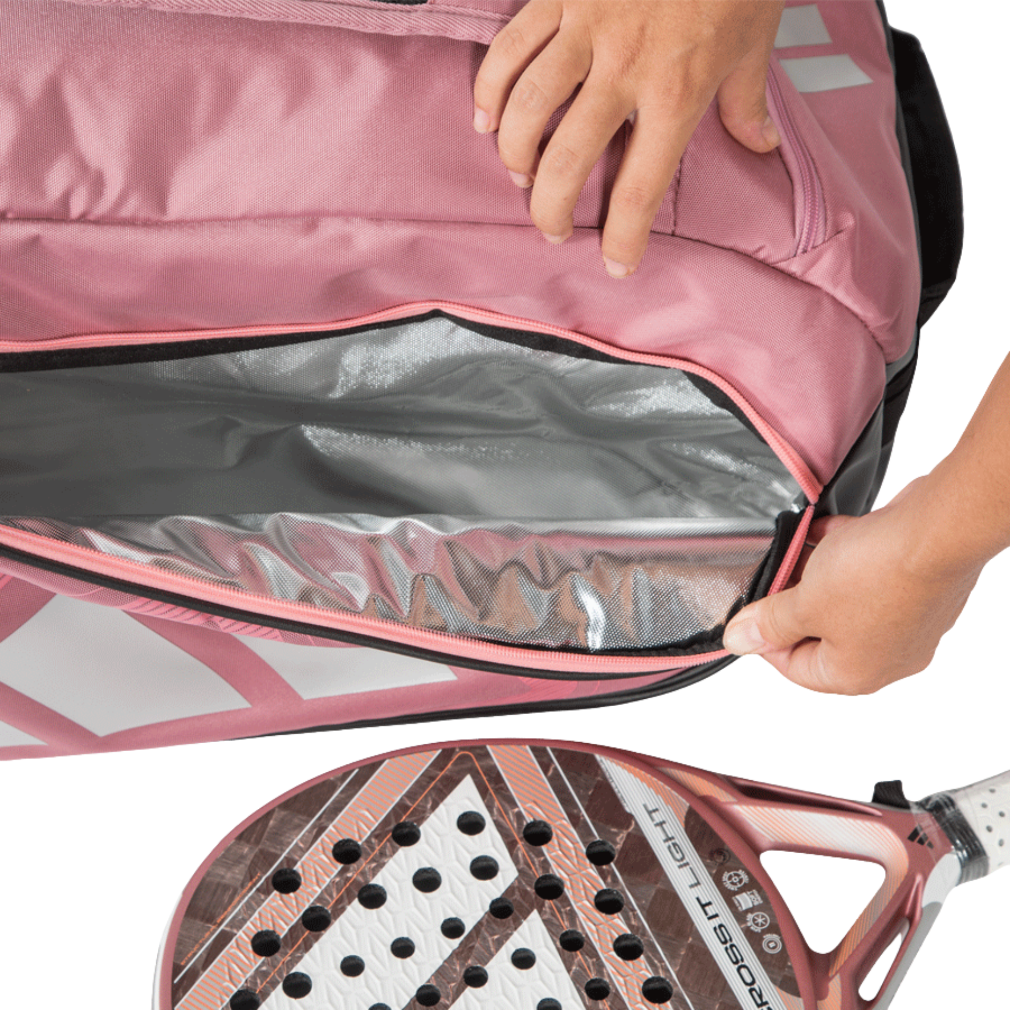 A: Yes, it features two thermal-insulated side compartments specifically designed to protect your rackets from extreme temperatures.