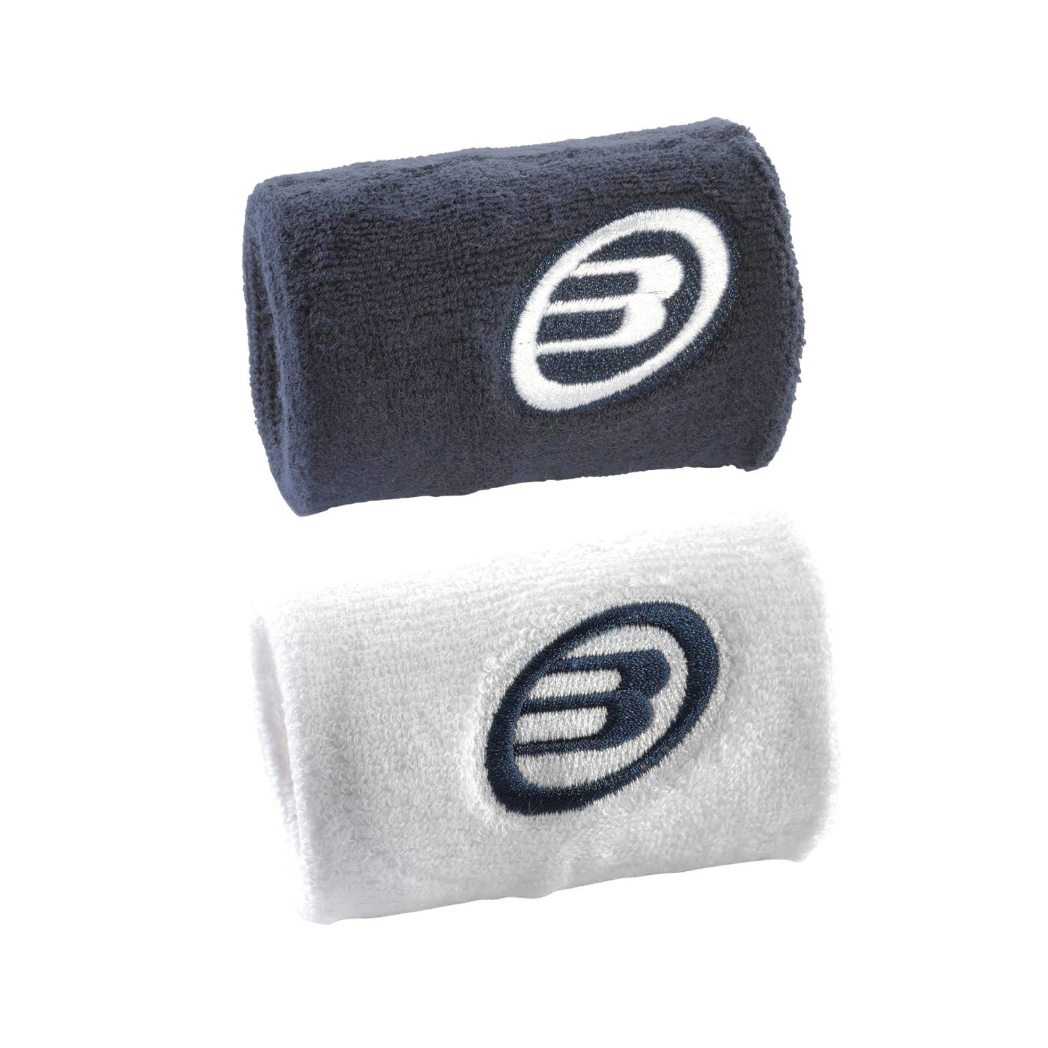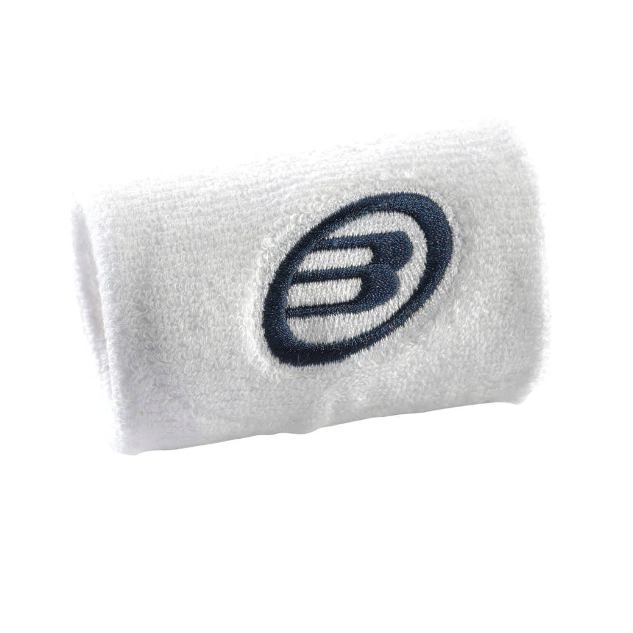 Bullpadel Wristband White/Navy Blue - Premium 2.5" padel sweatband with superior sweat absorption for dry hands & improved grip. Soft, stretchable, durable materials ensure comfortable snug fit. Essential tennis wristband for all racquet sports players.