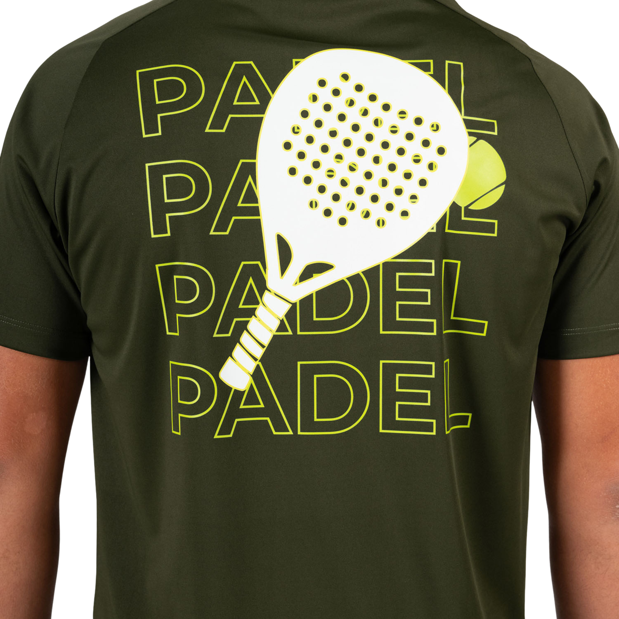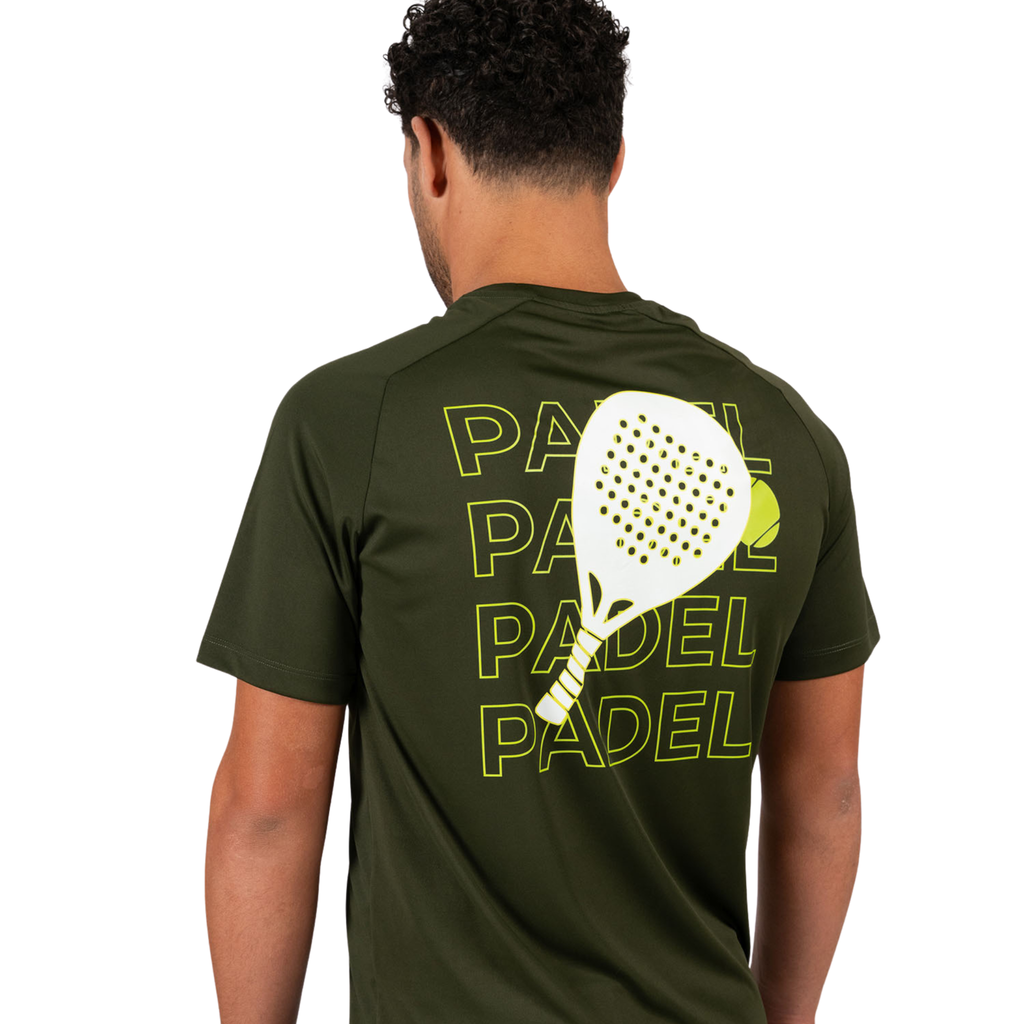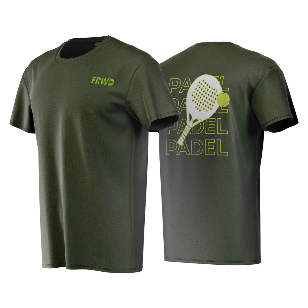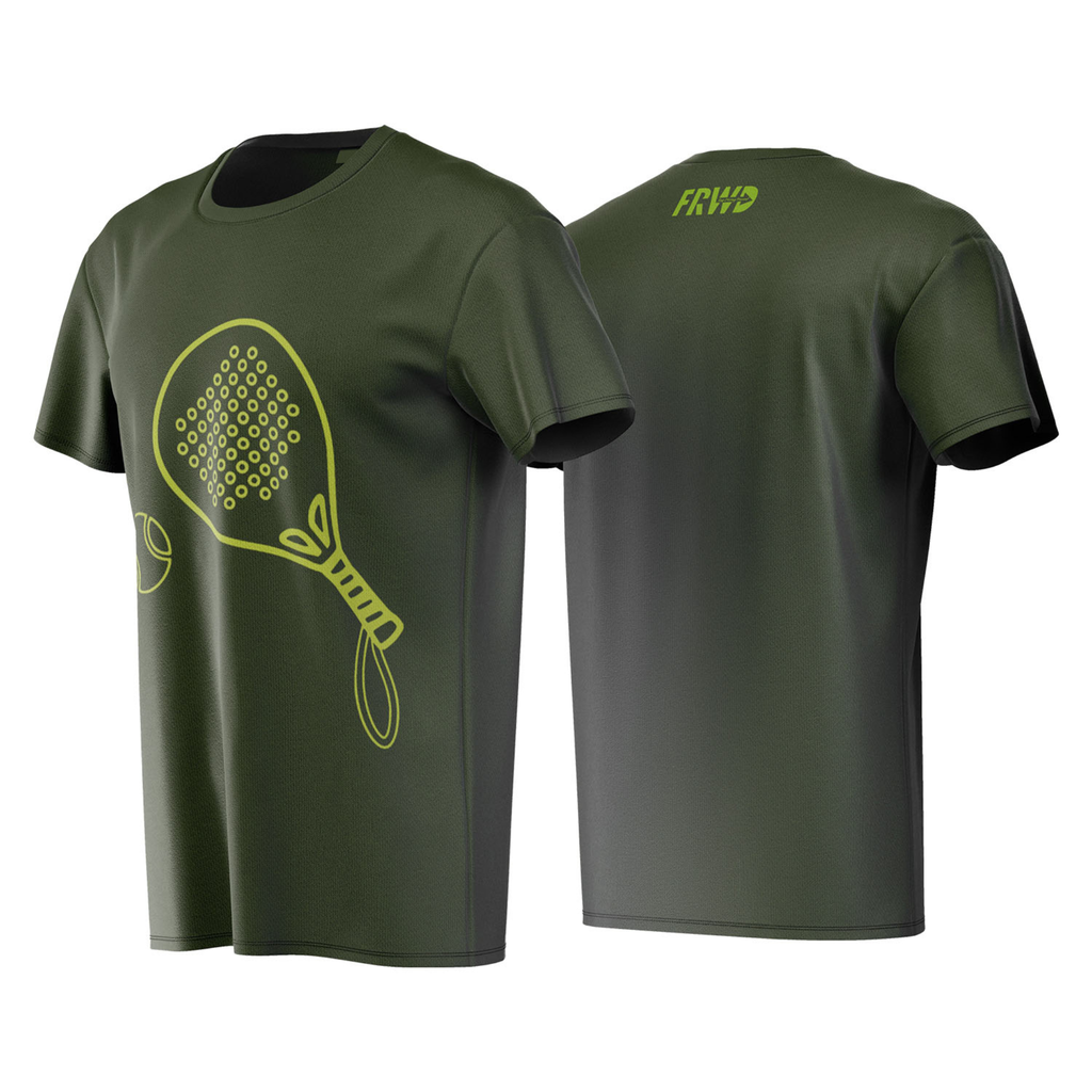 FRWD It's All About Padel T-Shirt Men - 100% polyester athletic shirt with moisture-wicking technology. Breathable, lightweight design for padel players. Bold slogan, flexible fit for full movement. Machine washable