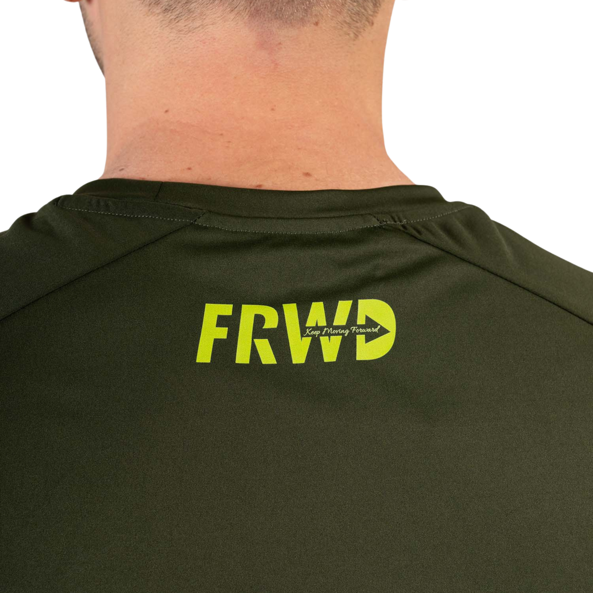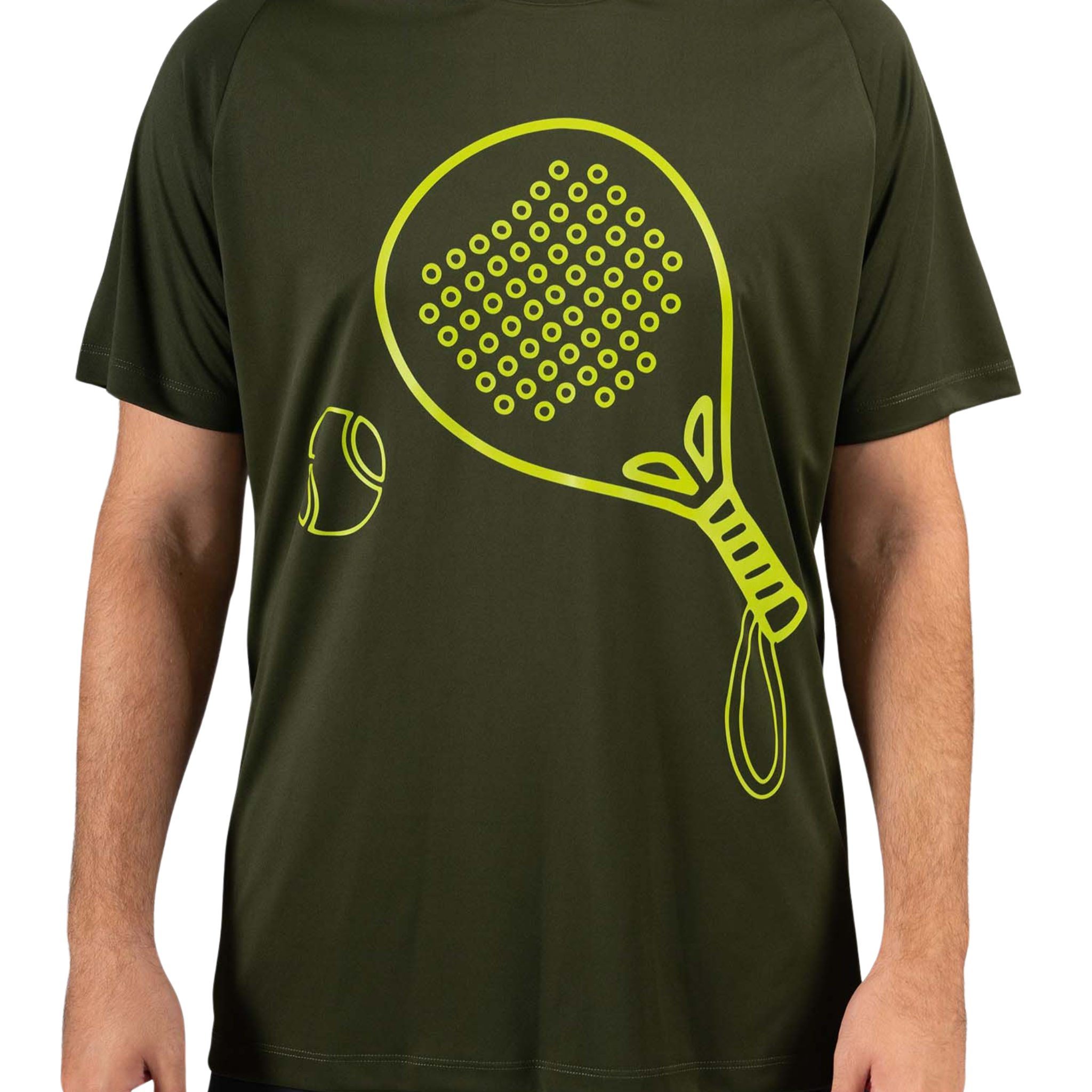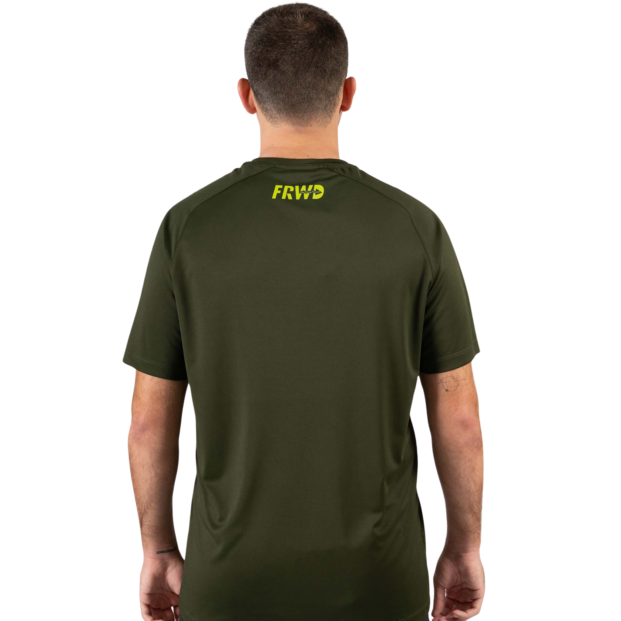 FRWD It's All About Padel T-Shirt Men - 100% polyester athletic shirt with moisture-wicking technology. Breathable, lightweight design for padel players. Bold slogan, flexible fit for full movement. Machine washable