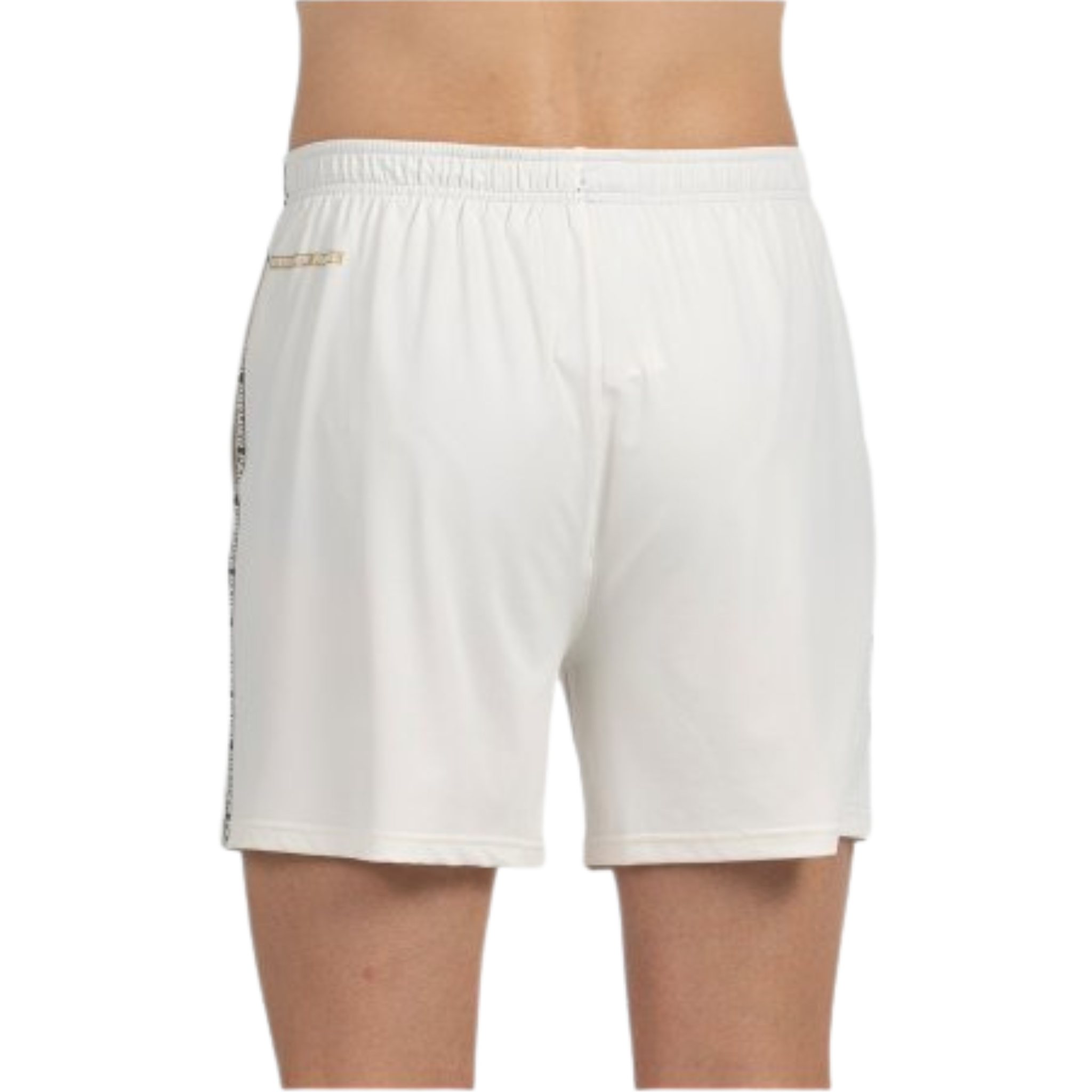 Bullpadel PREUX Men Padel Shorts 2026 with Drynamic moisture-wicking technology. Premier Padel 42cm shorts in polyester-elastane blend. Features adjustable drawstring, side pockets, custom graphics. Technical padel shorts for performance and comfort.